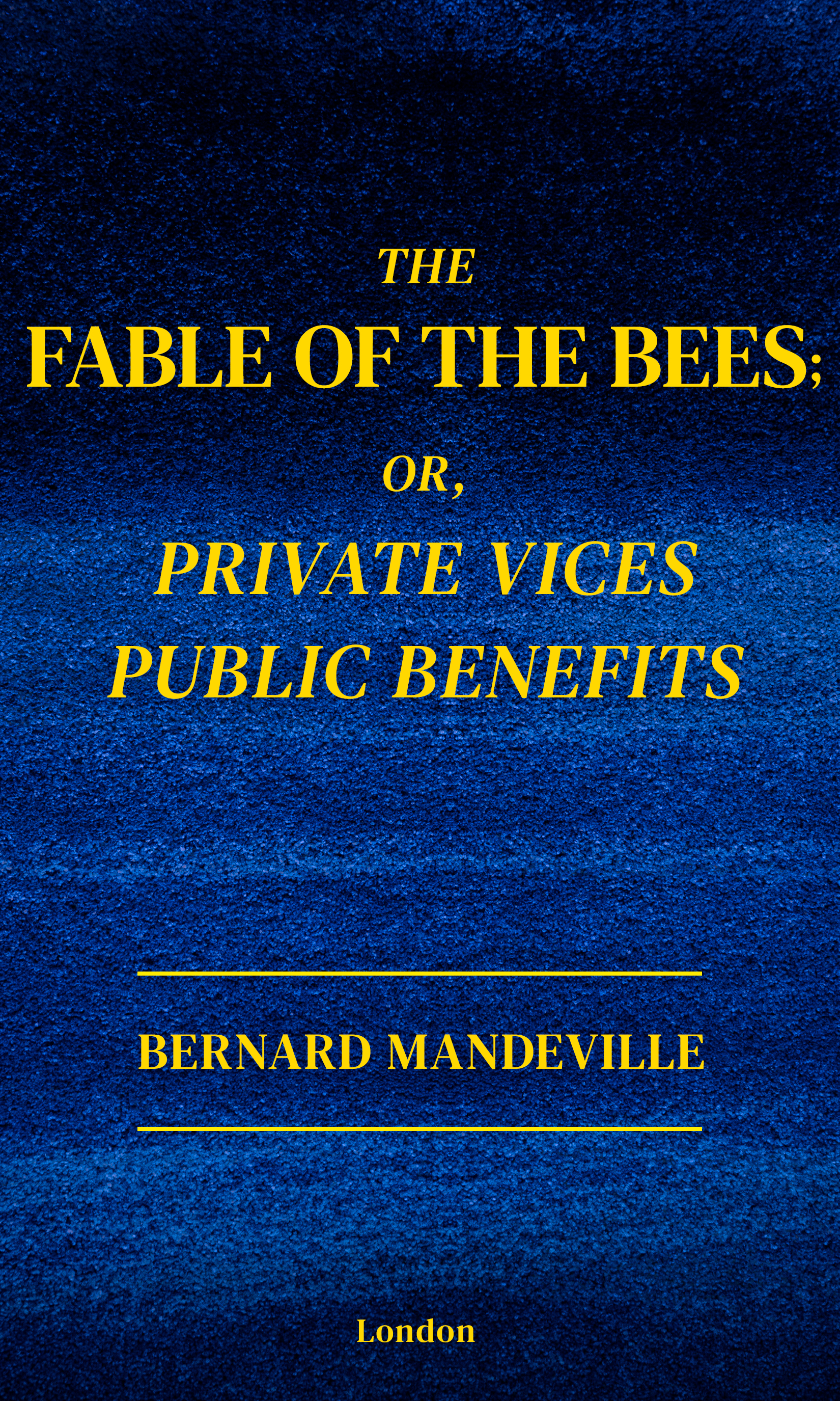 The Fable of The Bees: or, Private Vices, Publick Benefits (1714) is a book by the Anglo-Dutch social philosopher Bernard Mandeville. It consists of the satirical poem The Grumbling Hive: or, Knaves turn'd Honest, which was first published anonymously in 1705; a prose discussion of the poem, called "Remarks"; and an essay, An Enquiry into the Origin of Moral Virtue. In 1723, a second edition was published with two new essays.