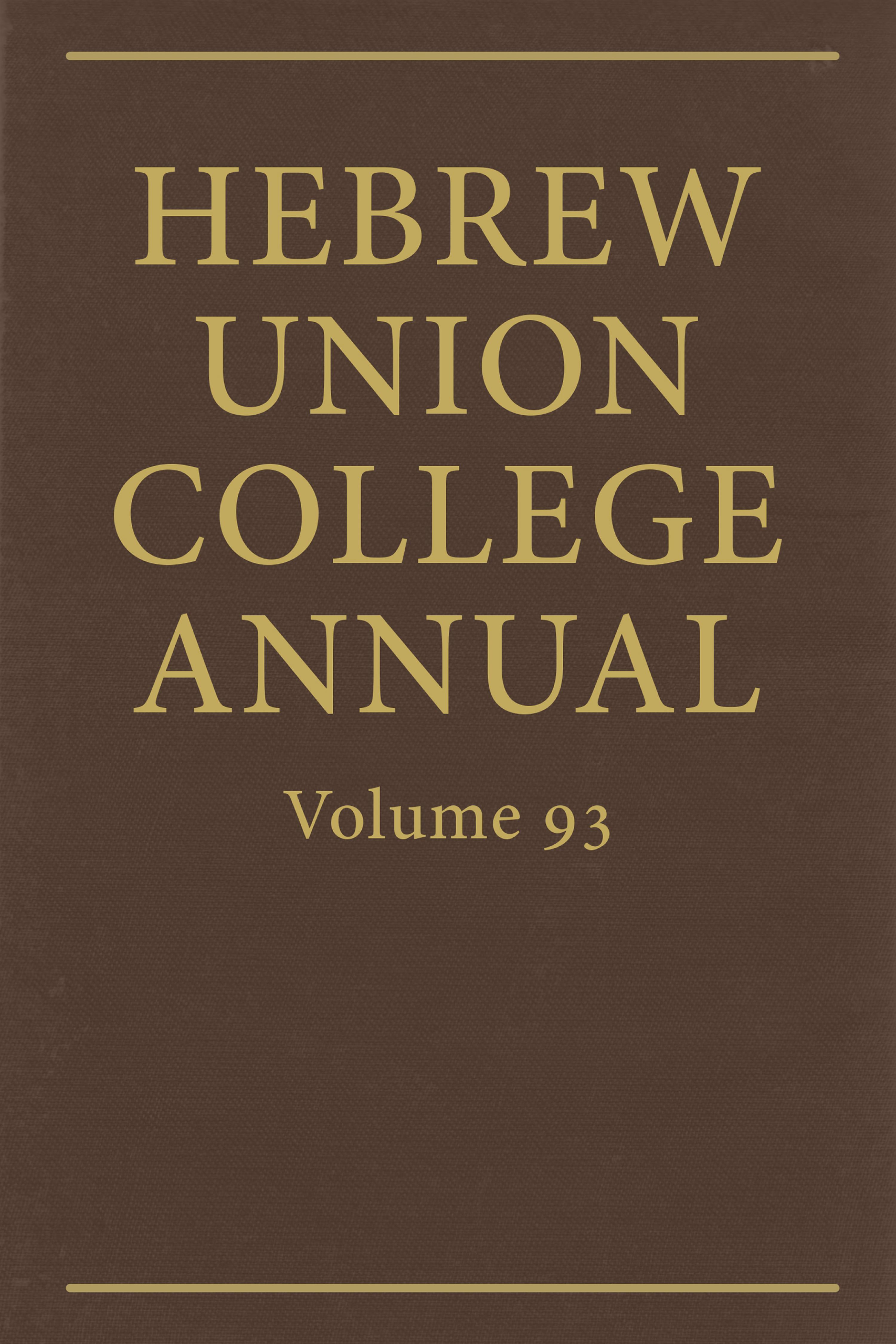 Hebrew Union College Annual Vol. 93 (2022)