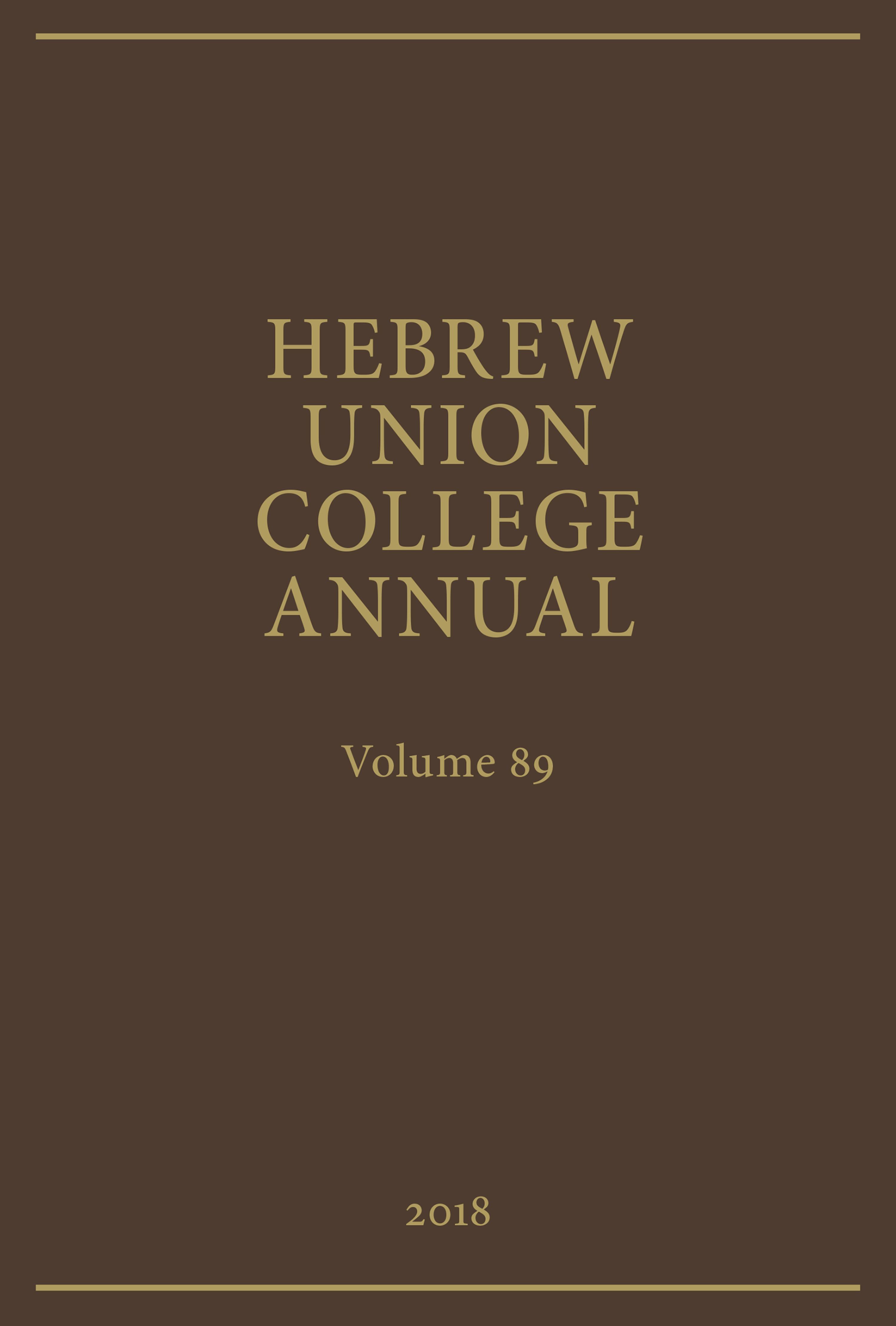 Hebrew Union College Annual Volume 89 (2018)
