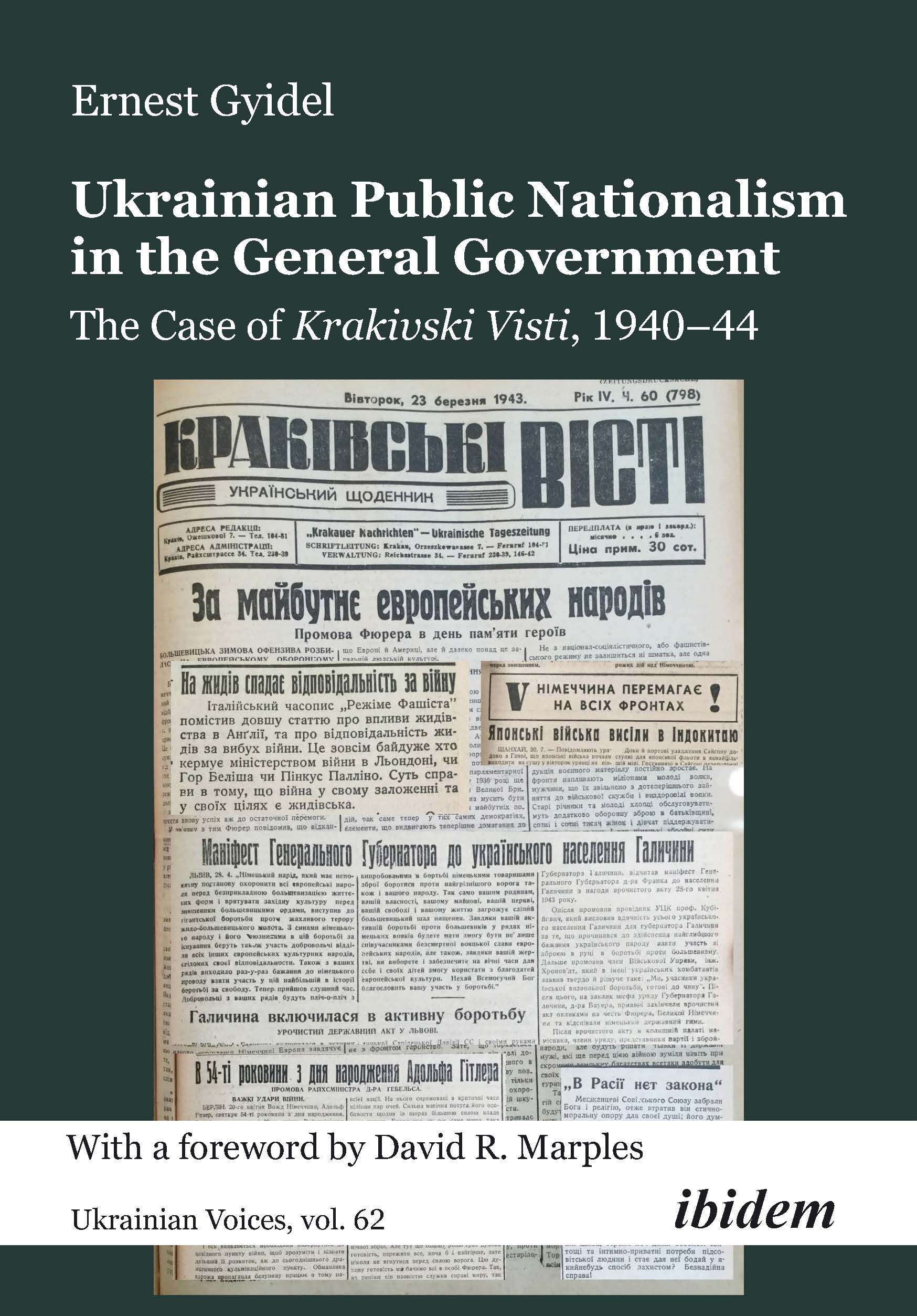 Most research on Ukrainian nationalism in the 20th century focuses on the OUN and UPA and their armed struggle for Ukraine’s independence. Ernest Gyidel’s book stands apart. It deals with a little-studied page in the history of nationalism, namely its public expression in the legal press under German occupation in World War II. He uses Krakivski Visti (Cracow News)—the leading Ukrainian newspaper of the General Government—as a case study due to its unique status of being less constrained by German censorship. Gyidel walks us through a variety of nationalistic expressions, from articles attacking Poles, Jews, and Russians to texts celebrating great Ukrainian writers, commemorating the national sacrifice, and discussing the threats of mixed marriages. He reminds us that the history of Ukrainian nationalism was written not only by people with guns and bullets but also with typewriters and printed words.