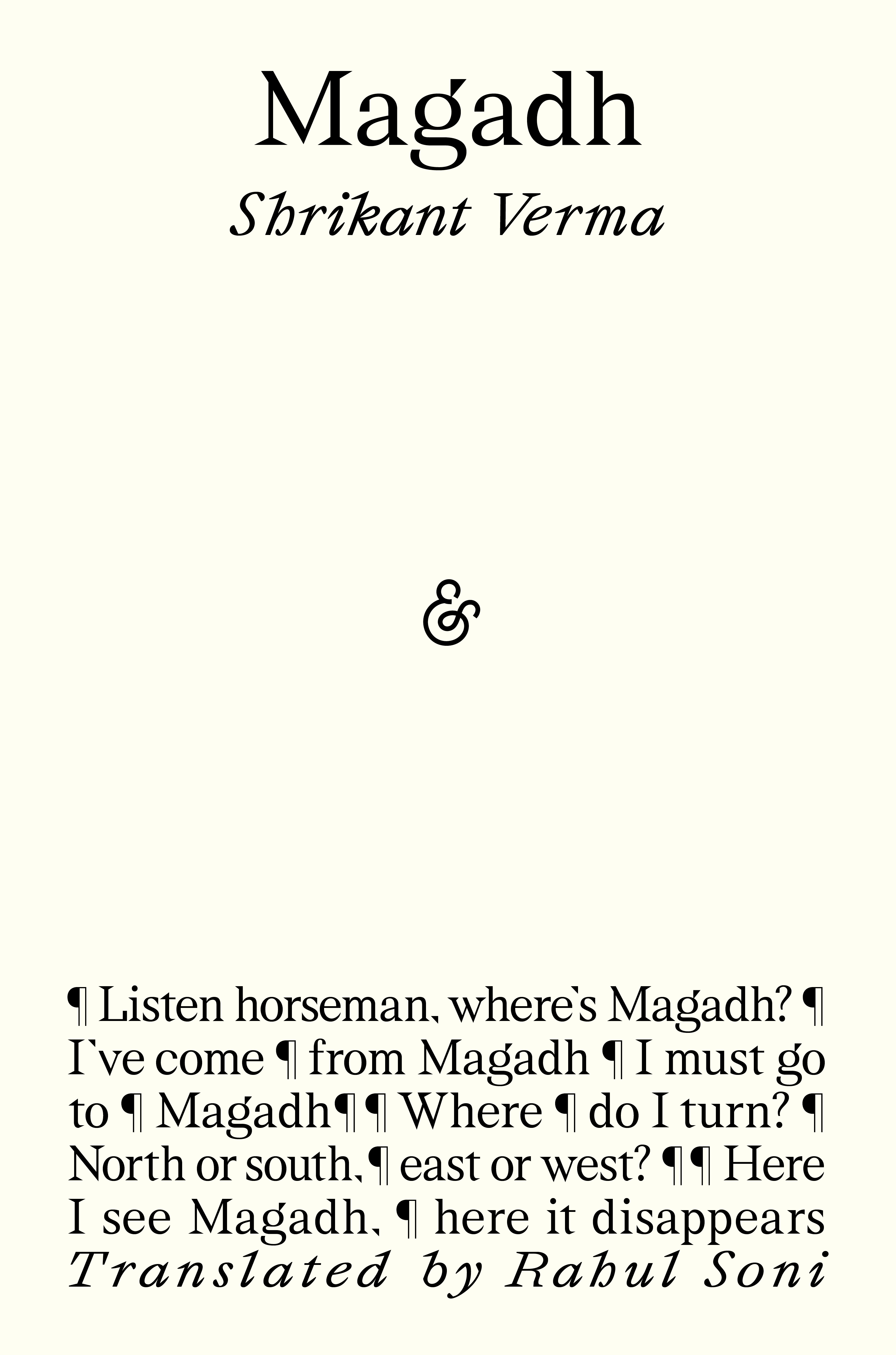 Magadh is widely regarded as one of the most important works of modern Indian poetry. A chorus of narrators – commoners, statesmen, nameless wanderers – pieces together the histories of ancient cities and kingdoms on the Indian subcontinent, their rise and fall. In spare, haunting, incantatory language appears timeless, Magadh tells of transience.
