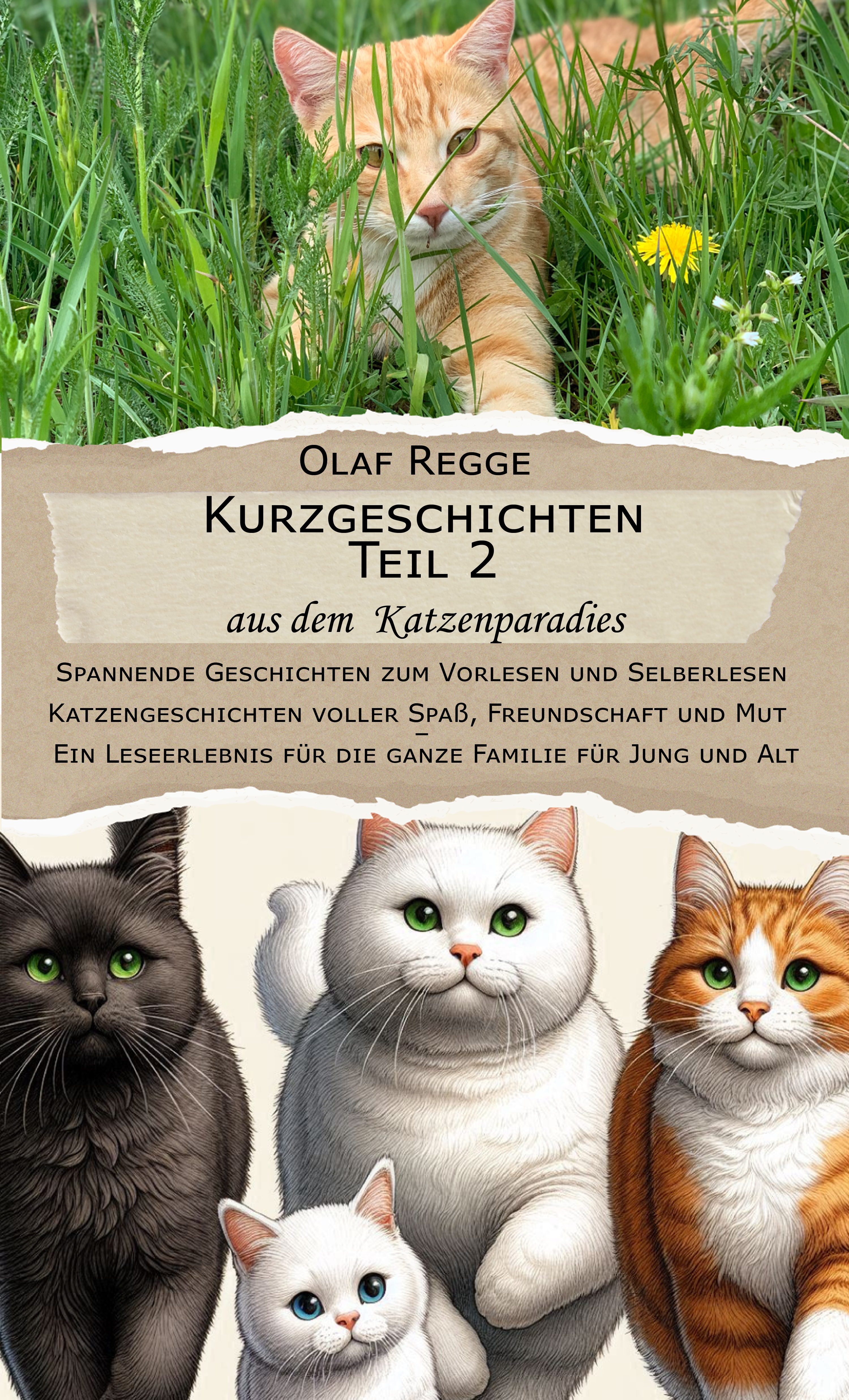 Kurzgeschichten aus dem Katzenparadies Band 2: Noch mehr pelzige Abenteuer, Chaos und Miau-spektakel!Katzenfreunde aufgepasst! Der Meister der schnurrigen Erzählungen, Olaf Regge, ist zurück und bringt in Band 2 noch mehr Abenteuer aus dem Katzenparadies mit, die eure Lachmuskeln auf die Probe stellen werden.In diesem neuen Kapitel dreht sich alles wieder um die pelzigen Superstars Felix, Minka, Max und die chaotische Gang. Ob Kühlschrankplündereien, faule Faulenzer-Kämpfe oder der Versuch, die Menschen endlich zu erziehen (wird jemals klappen, versprochen!) diese Geschichten sind ein wildes Potpourri aus Miau-Diplomatie und haarsträubenden Katastrophen.Aber Moment, was erwartet euch genau?Felix, der Kühlschrank-Akrobat: Felix hat einen neuen Plan dieses Mal soll die Kühlschranktür nicht wieder einfach so zufallen... aber wer hätte gedacht, dass Menschen so schnell misstrauisch werden?Minka, die Kuscheltier-Königin: Sie schützt ihre Plüschfreunde wie ein Drache seinen Goldschatz, bis Luna, die wilde Straßentigerin, mal "aus Versehen" das Seepferdchen durch die Luft segeln lässt...Max, der rasende Autofahrer (na ja, fast): Wie schafft es ein Kater heimlich in den Kofferraum und wo endet so ein ungeplantes Abenteuer? Tipp: Nicht beim örtlichen Tierarzt!Dieses Buch ist nicht nur für eingefleischte Katzenliebhaber ein Genuss. Hier wird gefaucht, geschnurrt und gekämpft, bis der Mensch schließlich wieder kapituliert und die Leckerlis auf einem Silbertablett serviert. Lachtränen sind vorprogrammiert, also legt euch ein Taschentuch bereit!Mit Band 2 aus der Kurzgeschichten aus dem Katzenparadies-Reihe bekommt ihr noch mehr Chaos, noch mehr Miau und ganz klar noch mehr Herz! Also, Katzenkörbchen ausgerichtet, Kratzbaum gesichert und auf ins nächste Abenteuer mit den wohl tollpatschigsten (aber sehr charmanten) Fellnasen aller Zeiten!