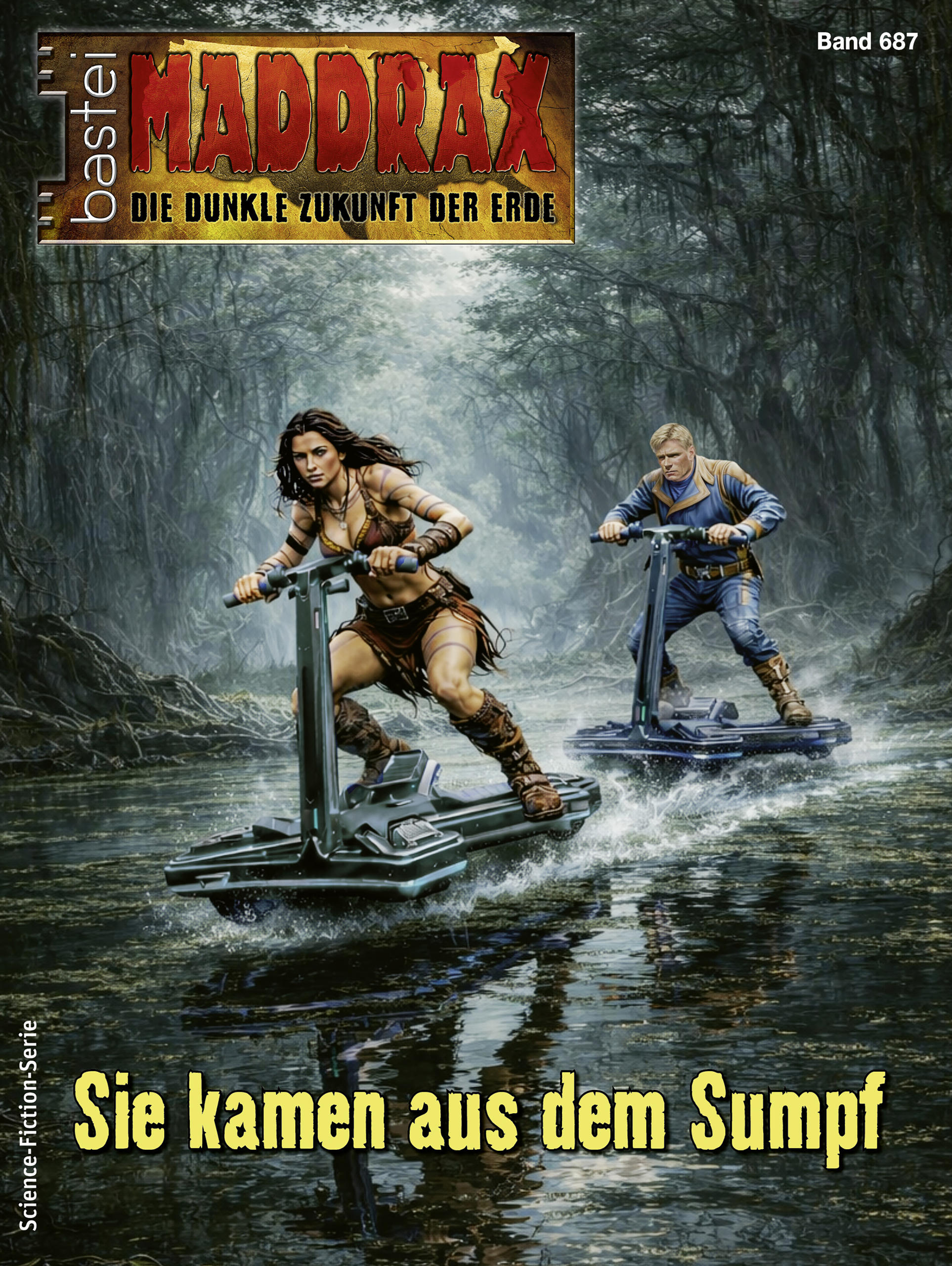 Die Explosion einer EMP-Waffe in einem abgelegenen Sumpfgebiet alarmiert den Weltrat. Wer hat sie gezündet? Steckt MAGMA dahinter? Tatsächlich ist es so - aber in diesem Fall ist die verbrecherische Organisation selbst das Opfer! Und während Matt und Aruula auf X-Quads in das tückische Gebiet vorstoßen, versucht auch MAGMA unter der Führung des Elektro-Daa'muren zu ergründen, was mit ihrem Waffenkonvoi passiert ist. Auf beide wartet das Verderben ...