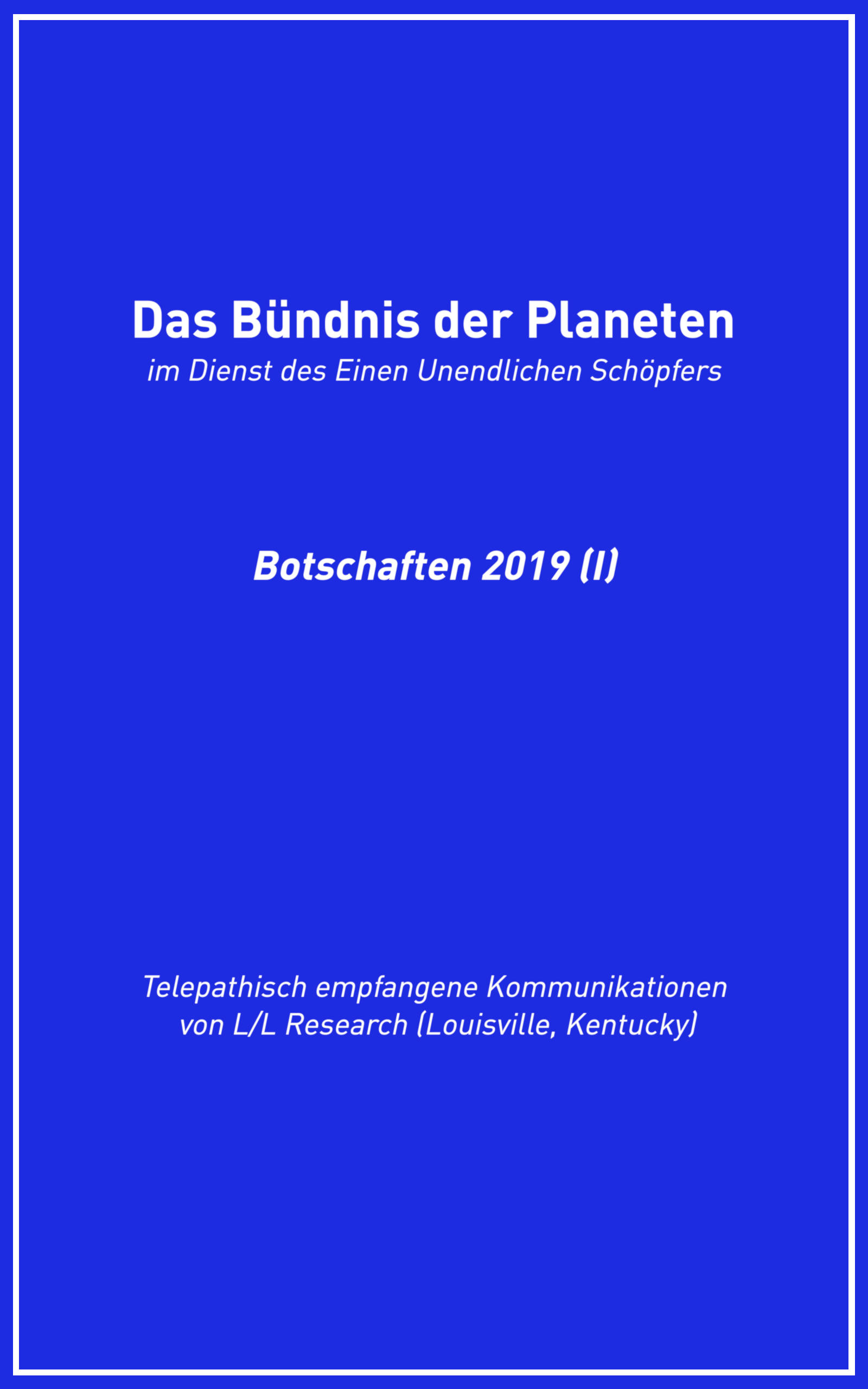 Die Botschaften der Samstagsmeditationen von L/L Research und dem Bündnis der Planeten im Dienst des Einen Unendlichen Schöpfers aus dem ersten Halbjahr 2019 Viele Fragen mit spirituellem Bezug stellte die L/L Research-Gruppe wieder im ersten Halbjahr 2019 an das Bündnis der Planeten. Als Channeling-Instrument fungierte in diesem Zeitraum Jim McCarty. "Das Prinzip von Q'uo", das durch die Instrumente von L/L Research spricht, ist eine Verbindung von drei - nach eigenen Aussagen - außerirdischen Bevölkerungen aus den sogenannten vierten, fünften und sechsten "Dichtestufen von Bewusstsein". Im Rahmen der Channeling-Meditationen von L/L Research (Louisville, Kentucky) spricht Q'uo seit 1985 durch die offene Gruppe, die auf den Piloten, Ingenieurswissenschaftler und Paranormalitätsforscher Don Elkins (1930-1984) und Carla Rückert (1943-2ß15). das Instrument im "Ra-Kontakt", zurückgeht. Zu den besprochenen Themen in dieser Ausgabe gehören u.a. Karma und Konditionierung, Sexualität und Zölibat, höhere Schwingung und DNA, Merkaba, Ehrlichkeit im blauen Strahl, der Brand von Notre Dame, Aufbau einer Persönlichkeitshülle, Ängste auf dem spirituellen Weg, die eigene Lebensaufgabe, sich mit Demut als der Schöpfer sehen, Koinzidenzen und Synchronizitäten.