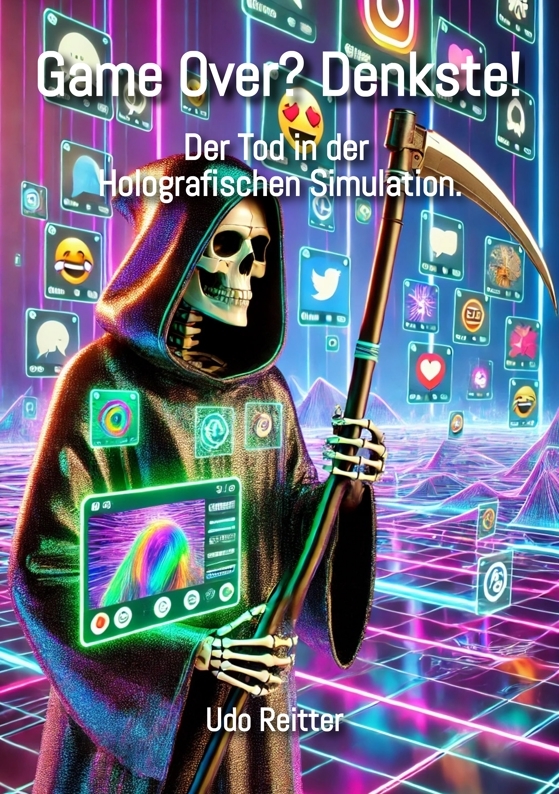 „Dieses Buch basiert auf der Theorie, dass wir alle in einer holografischen Simulation leben – quasi Sims-Figuren mit Bewusstsein. Unsere gesamte Existenz? Ein Haufen digitaler Datensätze! Und der Tod? Nur eine Datei, die in den Papierkorb verschoben wird. Klingt verrückt „Mag sein, aber vielleicht wird es Zeit für ein radikales Update unseres Denksystems!“