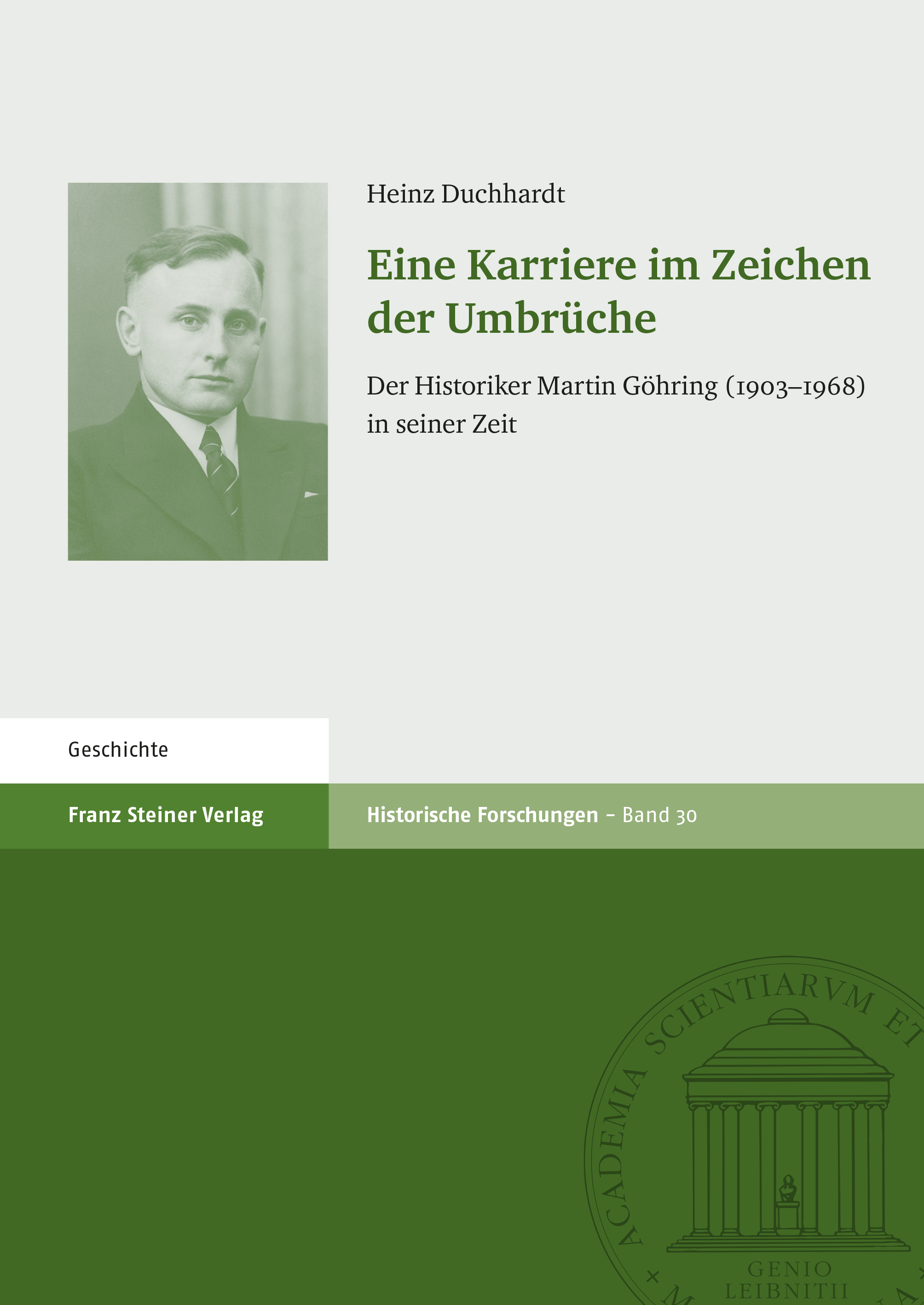 Heinz Duchhardt geht in diesem Band – auf der Grundlage eines breiten Aktenmaterials – der akademischen Karriere eines "sozialen Aufsteigers" aus dem südlichen Württemberg nach. Der Historiker Martin Göhring gelangte über den zweiten Bildungsweg zum Studium im In- und Ausland und wurde 1932 mit einer Arbeit zur Französischen Revolution promoviert. Parteimitglied seit 1935, blieb er diesem Forschungsfeld auch nach der Habilitation als Hallenser Dozent und Professor an der Reichsuniversität Straßburg und über das Jahr 1945 hinaus treu, um erst Mitte der 1950er Jahre seinen Forschungsschwerpunkt radikal auf die deutsche Zeitgeschichte umzustellen. Seine wichtigsten wissenschaftlichen Positionen waren das Direktorat am Institut für Europäische Geschichte (seit 1951) und, nachdem alle seine Versuche gescheitert waren, eine Professur an einer württembergischen Universität zu erlangen, sein Lehrstuhl an der Universität Gießen (seit 1961). Martin Göhring war keine der unstrittigen Führungsfiguren des Fachs, aber seine Karriere steht für die Wege, sich vom NS-System nicht völlig verbiegen zu lassen, und für die Mühen, nach 1945 wieder in den akademischen Betrieb einzusteigen.