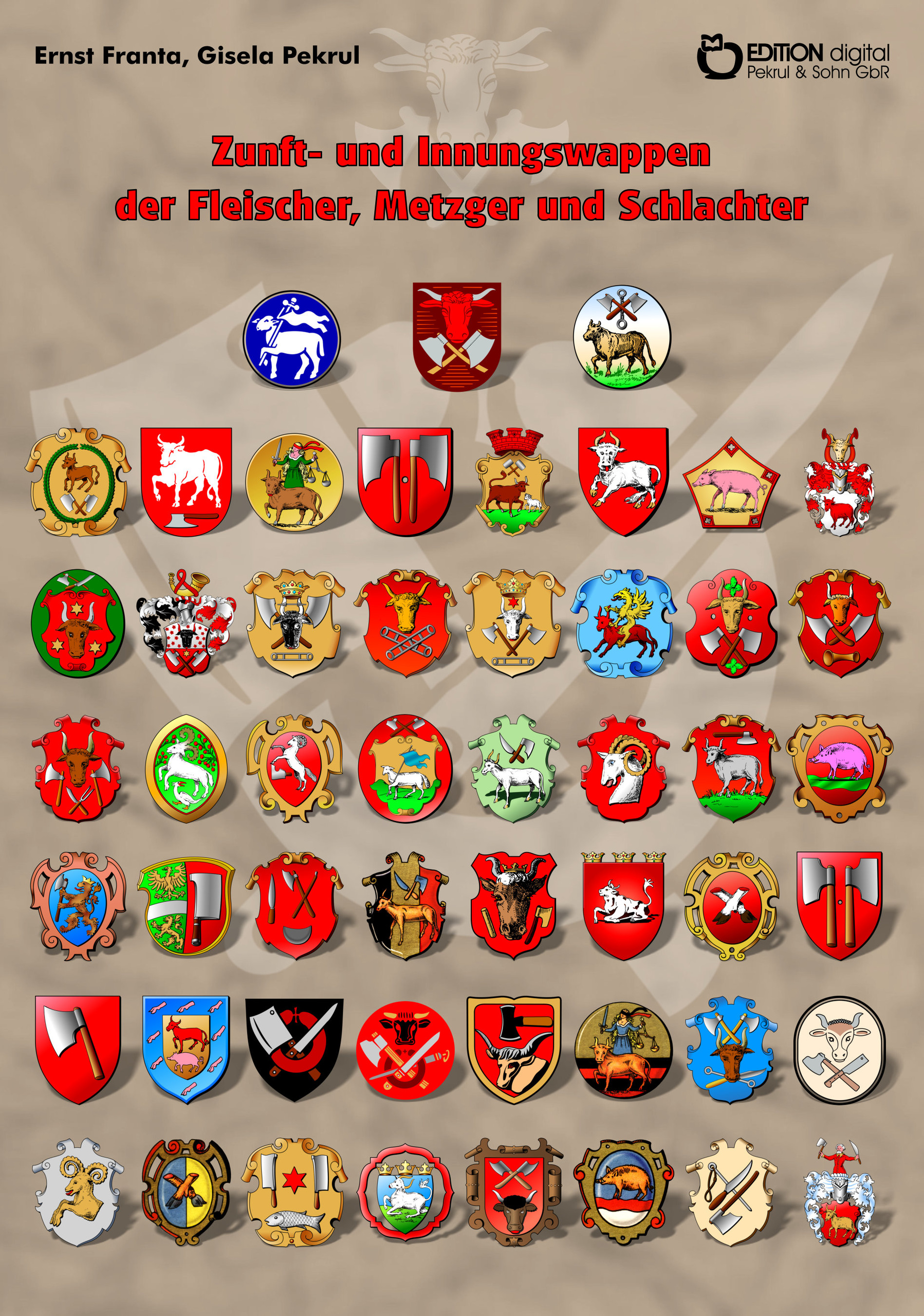 Die Publikation enthält 41 historische ZUNFTZEICHEN (Zunftwappen, Zunftsymbole), INNUNGSZEICHEN (Innungswappen, Innungssymbole), HANDWERKSZEICHEN (Handwerkswappen, Handwerkssymbole) und BERUFSWAPPEN (Berufszeichen, Berufssymbole) der Fleischer, Metzger, Schlachter mit Beschreibung und Quellenangaben sowie die Berufsbeschreibung.