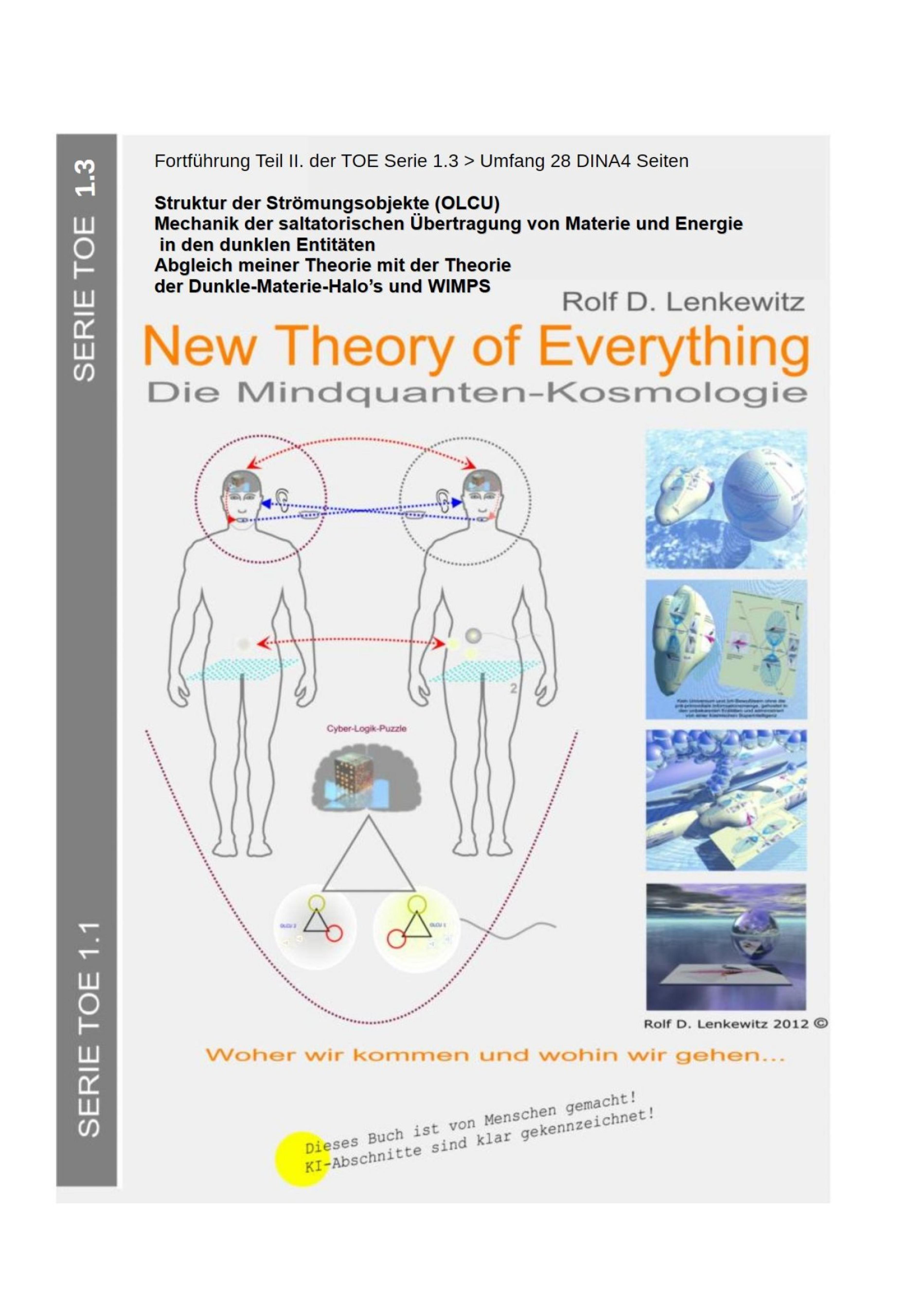 Die Theory of Everything (TOE) von Rolf‑Dieter Lenkewitz schlägt vor, das Universum als zweischichtiges System zu sehen: eine sichtbare Schicht aus normalen, leuchtenden Materie‑Strukturen und eine zweite, dominante Schicht aus einem kohärenten, dunklen Substrat. Raum und Zeit sind in diesem Bild keine fundamentalen Größen, sondern Erscheinungen, die aus tiefer liegenden Strömungsprozessen entstehen. Die grundlegenden Bausteine sind keine Teilchen im klassischen Sinn, sondern großskalige, kohärente Strömungsobjekte (OLCU), die Energie und Information transportieren. Diese Struktur kann viele bekannte Phänomene erklären — von Quantenphänomenen bis zur kosmologischen Expansion — und liefert neue, überprüfbare Vorhersagen, die sich von den üblichen Dunkle‑Materie‑Teilchenmodellen unterscheiden. Was ist die zentrale Idee? Statt das Universum als Ansammlung winziger Teilchen zu sehen, schlägt die TOE vor, dass ein unsichtbares, zusammenhängendes Feld das Verhalten von Licht, Materie und Gravitation prägt. Dieses Feld verhält sich wie ein "dunkles Meer" mit Strömungen und Wirbeln; die sichtbare Materie schwimmt darin und reagiert auf dessen Kohärenz‑Strukturen.Vergleich mit konventionellen Dunkle‑Materie‑Modellen (Laienversion) Konventionelles Bild (WIMPs/WISPs): Die gängige Vorstellung ist, dass unsichtbare Teilchen die fehlende Masse liefern. Diese Teilchen sammeln sich in Halos um Galaxien und erklären so, warum Sterne in den Außenbereichen schneller rotieren als erwartet. TOE‑Bild: Anstelle vieler einzelner Teilchen sind Halos Regionen, in denen das dunkle Substrat besonders kohärent ist — also Bereiche mit starken Strömungs‑ und Phasenmustern. Die beobachteten Effekte (flache Rotationskurven, Lensing) entstehen durch die Wechselwirkung sichtbarer Materie mit diesen kohärenten Strukturen, nicht durch die Gravitation vieler einzelner Teilchen.
