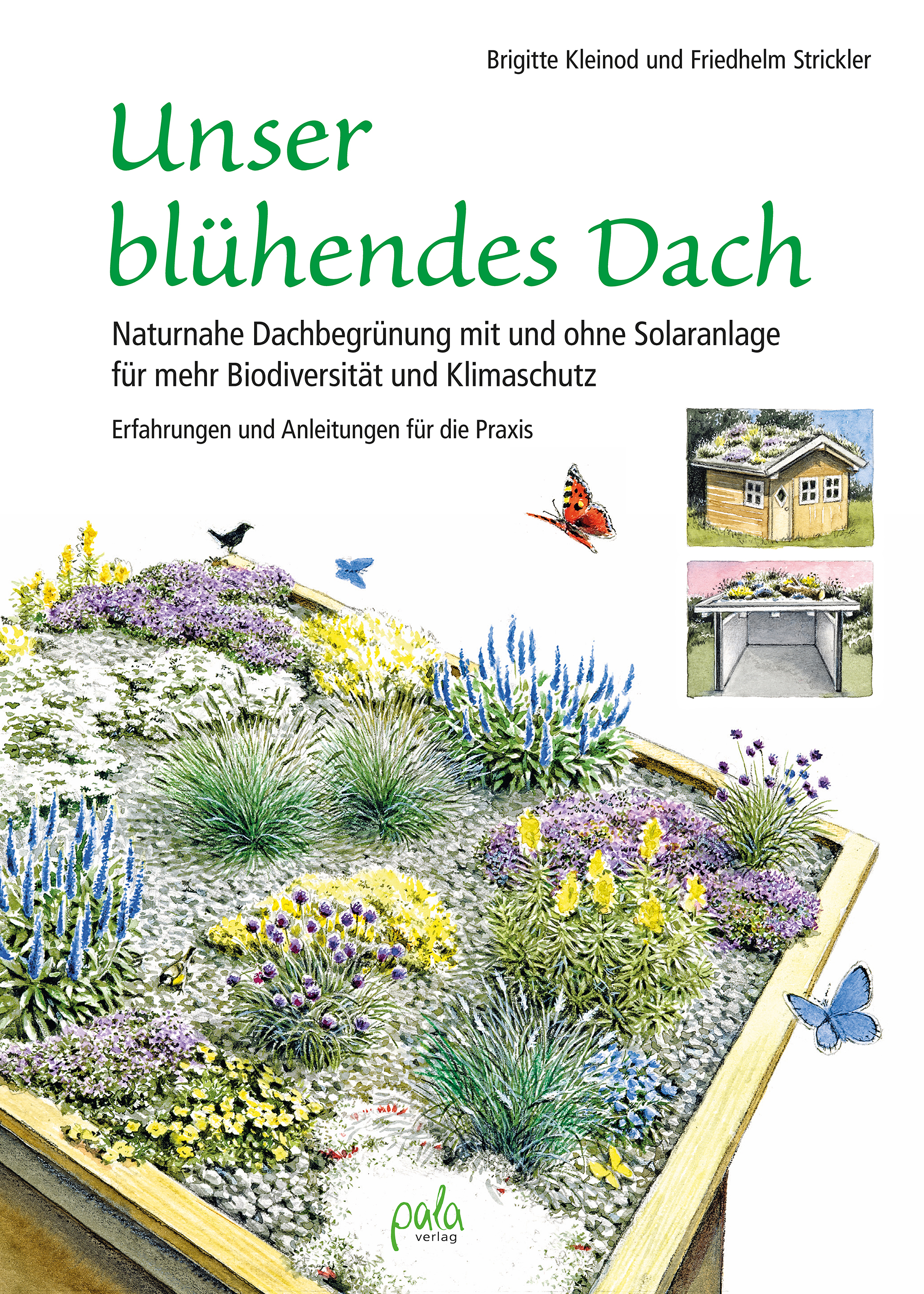 Brigitte Kleinod und Friedhelm Strickler erklären zunächst die ökologischen Grundlagen und die technischen Voraussetzungen. Anschließend geht es Schritt für Schritt darum, ein unbelebtes Dach in einen artenreichen Ort für Pflanzen und Tiere zu verwandeln. Konkrete Pflanzvorschläge mit Mengenangaben und Pflanzenlisten für unterschiedliche Standorte und Substratstärken sowie Querschnittszeichnungen helfen dabei. So können auch Wasserstellen für Vögel und Insekten, Sandflächen mit integriertem Totholz oder Nisthilfen für Tiere auf dem Dach entstehen. Das Dach ist damit auch besser an die Extreme der Klimakrise angepasst. Was beachtet werden muss, damit das Dach und die Bepflanzung lange halten, und welche Pflege eine gute Begrünung braucht, erklärt das Buch ebenfalls.