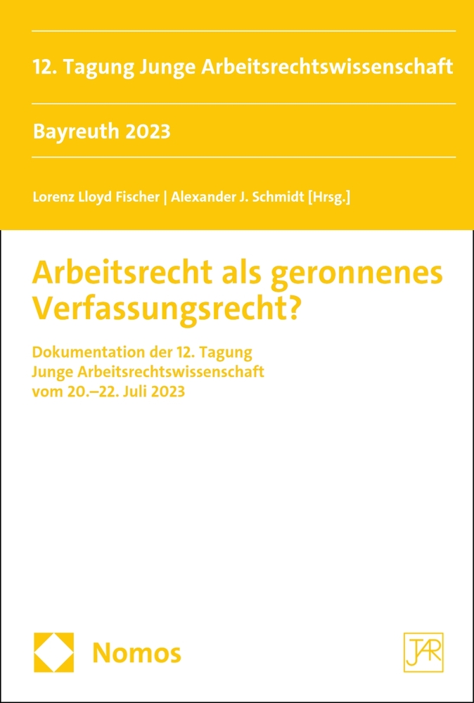 Der Band dokumentiert die Referate der 12. Tagung Junge Arbeitsrechtswissenschaft (vormals Assistentinnen- und Assistententagung im Arbeitsrecht), die vom 20. bis 22. Juli 2023 an der Universität Bayreuth unter dem Generalthema „Arbeitsrecht als geronnenes Verfassungsrecht?“ stattfand.Über das Verhältnis zwischen Verfassung und Arbeitsrecht wird bereits seit Jahrzehnten gestritten. Während sich das Arbeitsrecht nicht strikt vom Verfassungsrecht trennen lässt, müssen demgegenüber gesetzgeberische Entscheidungsspielräume und die Eigenständigkeit des Privat- und Arbeitsrechts, dem Vorrang der Verfassung zum Trotz erhalten bleiben. Diesem Spannungsverhältnis widmen sich die Beiträge aus verschiedentlicher Perspektive.Mit Beiträgen vonLukas Diepenthal | Dr. Lorenz Lloyd Fischer | Lisa Gerlach, LL.B. | Dr. Johannes Götz | Dr. Sarah Häußinger | Julia Möller-Klapperich, LL.M. | Prof. Dr. Andreas L. Paulus | Prof. Dr. Dres. h.c. Monika Schlachter | AkadR a. Z. Alexander J. Schmidt | Johannes Tegel | Mag. Nicole Windisch | Mag. Anna Zaversky