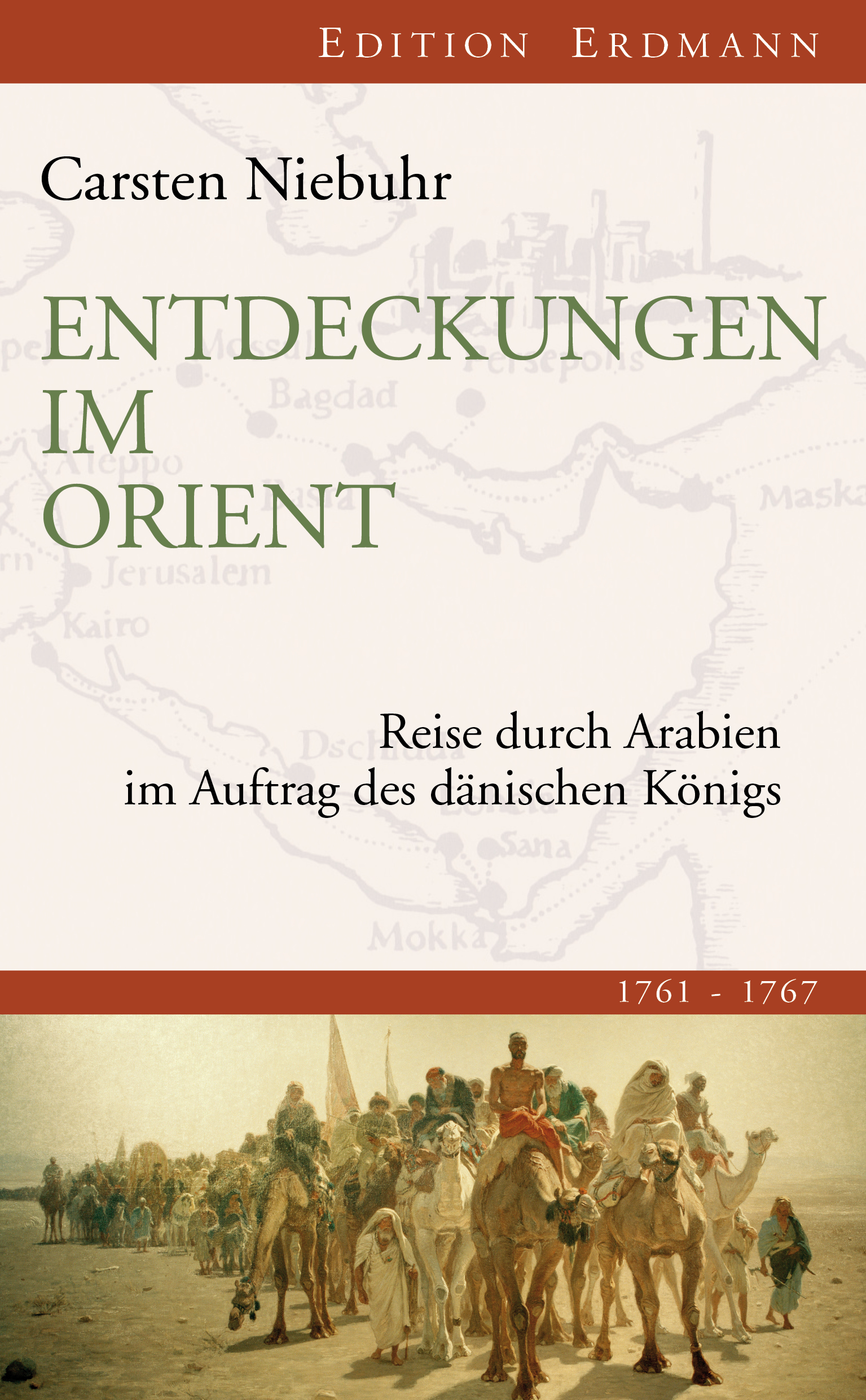 "Der erste deutsche Hadji." Johann Gottfried Herder über Carsten Niebuhr Was für die sechsköpfige königlich-dänische Arabienexpedition am 4. Januar 1761 als wissenschaftliches Unternehmen zur Erforschung des Südens der Arabischen Welt begann, wird schon bald zu einem Kampf um Leben und Tod. Nach strapaziösen Karawanenzügen durch die Wüsten Arabiens, von Proviantmangel ausgezehrt, von Räubern und Krankheiten heimgesucht und von vermeintlichen Freunden in eine tödliche Falle gelockt, versuchen sich die wenigen Verbliebenen der Expedition ins Landesinnere des Jemen durchzuschlagen. Sechs Jahre später wird der deutsche Kartograf und Forschungsreisende Carsten Niebuhr als einziger Überlebender dieses abenteuerlichen Unterfangens nach Kopenhagen zurückkehren und dort seinen Aufsehen erregenden Forscherbericht veröffentlichen. Dieser trug ihm zahlreiche Auszeichnungen ein, denn Niebuhr ermöglichte u.a. mit seinen akribischen Kopien der altpersischen Schrift deren spätere Entzifferung.