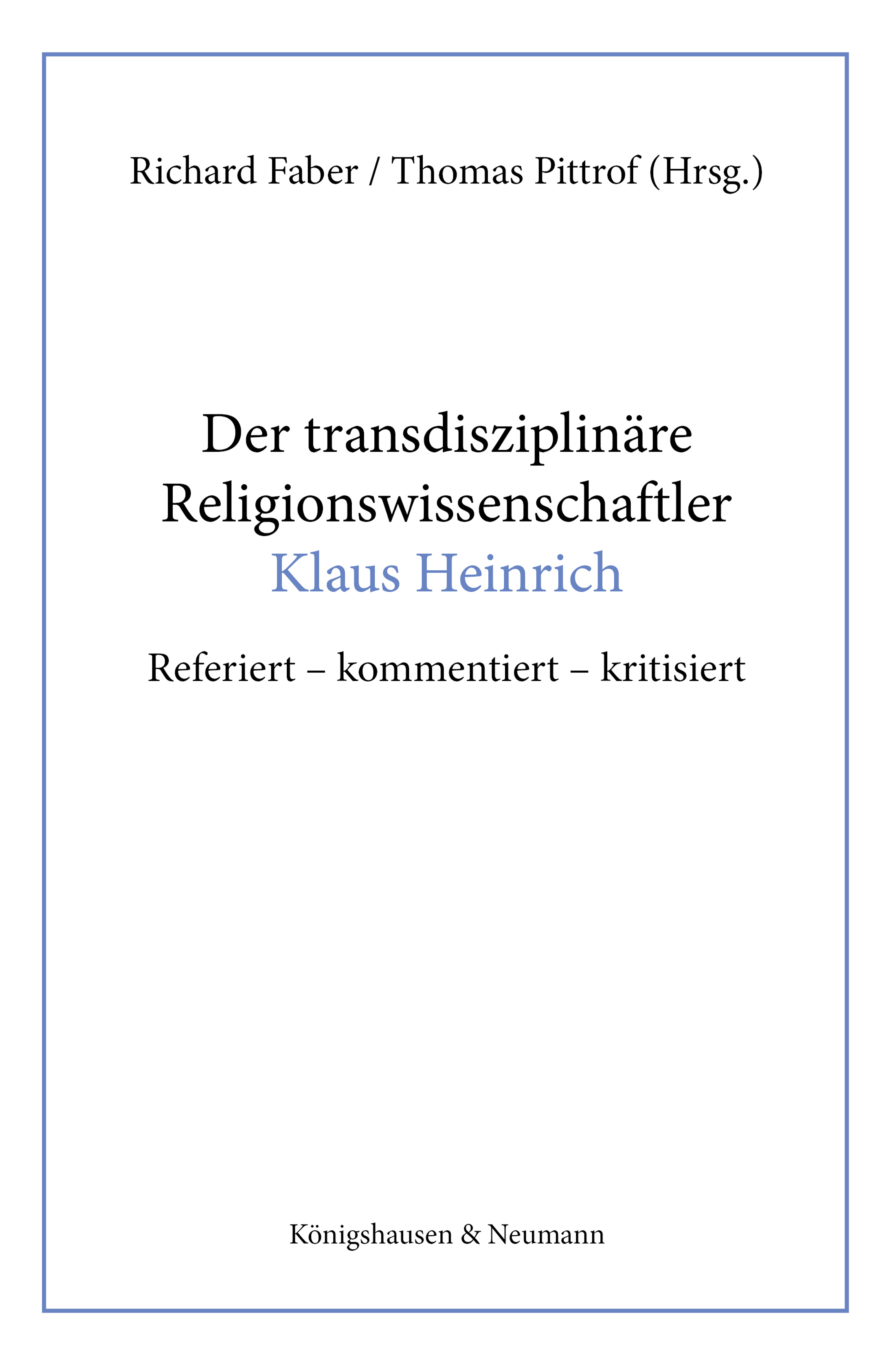 Der transdisziplinäre Religionswissenschaftler Klaus Heinrich