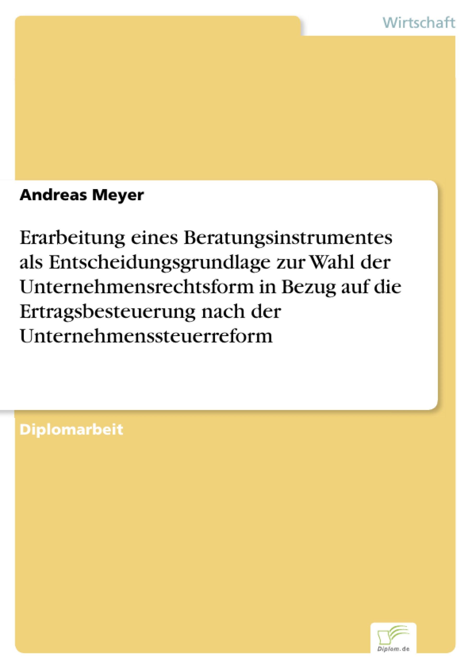Erarbeitung eines Beratungsinstrumentes als Entscheidungsgrundlage zur Wahl der Unternehmensrechtsfo