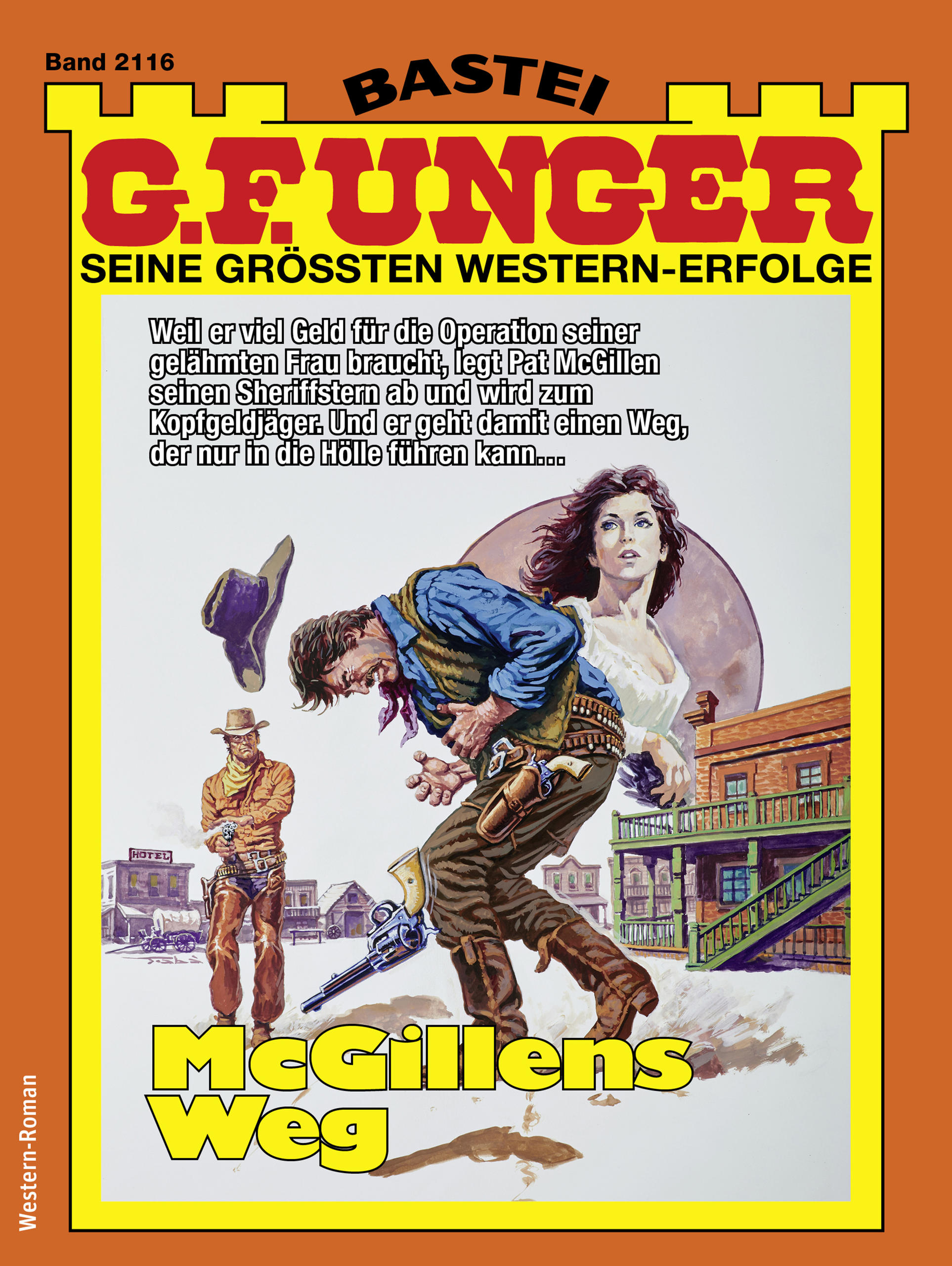 »Sicher, man könnte ihr vielleicht helfen«, überlegt er. »Doch das kostet ein Schweinegeld. Da musst du erst mal dreitausend Dollar hinlegen und dann jeden Monat nicht weniger als zweihundert Dollar berappen. Hast du so viel Geld? Wenn ich mich nicht irre, bekommst du als Sheriff sechzig Dollar im Monat und ein paar Spesen, freie Wohnung, freien Mietstall ‑ und eine kostenlose Beerdigung. Da kannst du noch zwanzig Jahre den Stern tragen und hast das Geld für Nancy immer noch nicht zusammen ...«