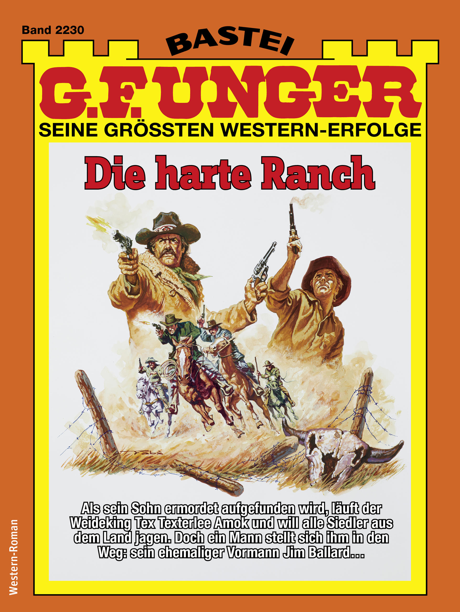 Auf dem Wege nach Bow verhält Jim Ballard sein Pferd. Von links kommt das Rudel der TT Ranch angeritten, als wollte es ihm den Weg abschneiden. An der Spitze der harten Mannschaft reitet Jack Quaid. Jim kennt ihn und die rücksichtslose Art dieser Meute. Vor wenigen Jahren war Jim selbst noch Vormann der Ranch gewesen. Bis er sich nach einer Auseinandersetzung mit dem Boss Bully Tex Texterlee selbstständig machte. Mit Jack Quaid, der jetzt Vormann ist, stand Jim schon von jeher auf Kriegsfuß. Jim kennt sich aus: Das dort sind keine Cowboys, das sind angeworbene Revolverschwinger!