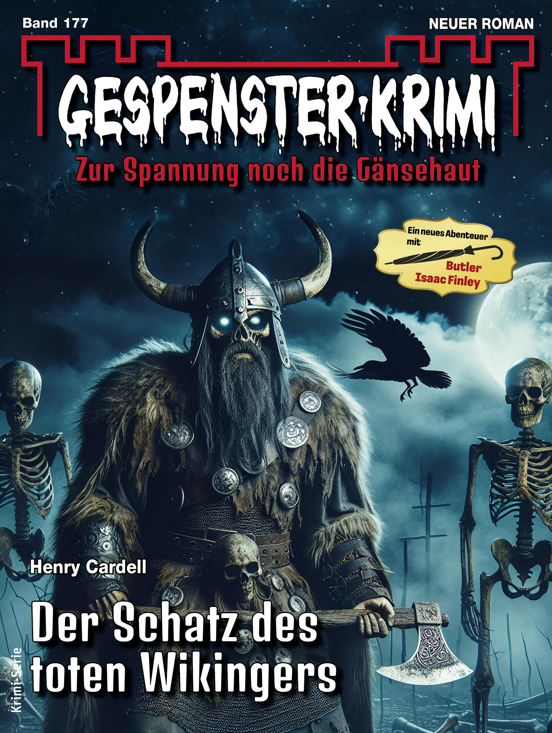Auf einer schroffen Felseninsel nahe der schottischen Küste erheben sich die Ruinen von Cnàimh Castle, einst die Burg eines berüchtigten Wikingers, der dort lebendig eingemauert wurde - mit all seinen Schätzen aus unzähligen Raubzügen. Auf die hat es der verschrobene Grabräuber Leonard Forrester abgesehen. Doch um an das Gold und die Edelsteine zu gelangen, braucht er die Hilfe der Okkultismus-Expertin Lady Mildred Enderby, denn ein Fluch liegt über Cnàimh Castle. Und so muss sich auch Lady Mildreds Butler Isaac Finley nach Mallachd Island begeben - und gerät in ein haarsträubendes Abenteuer in der düsteren Burgruine und ihren geheimnisvollen Verliesen, wo er auf eine ganze Horde wieder zum Leben erwachter Wikingerkrieger stößt!